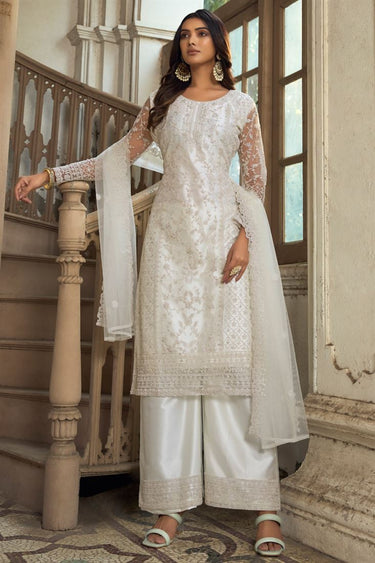 White Color Net Fabric Adorming Party Look Palazzo Suit