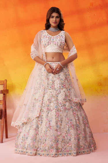 White Wedding Wear Net Fabric Lehenga Choli With Dupatta