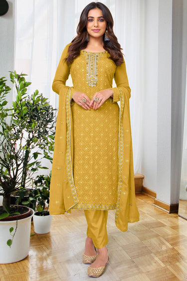 Yellow Color Embroidered Suit In Georgette Chiffon Fabric