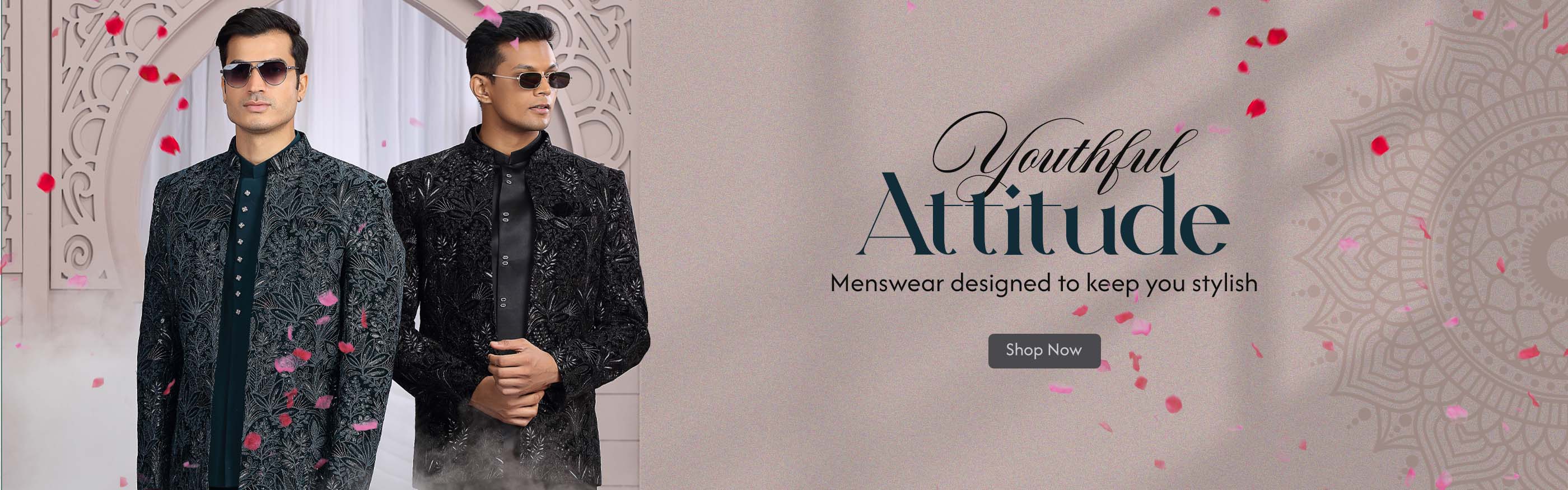 Black Color Wedding Wear Art Silk Fabric Indo Western For Boys
